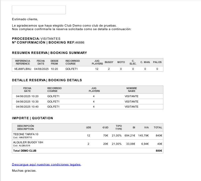 Confirmación de reserva